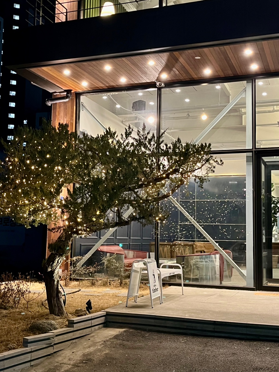 통유리 카페라 밤에 보면 너무 예쁘고 낮에도 하늘보기 좋을 것 같아요.